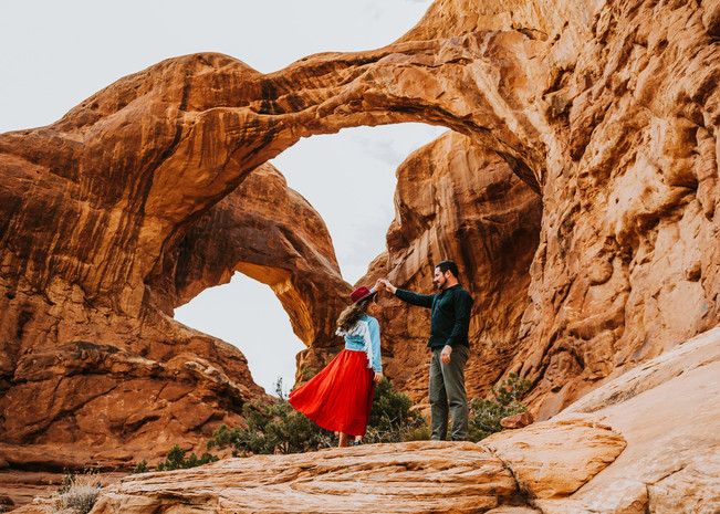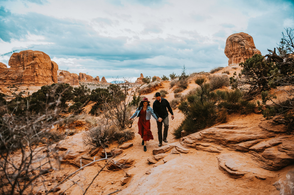 Here’s a look back on a session I had with these cuties a month ago now! It had been a long time dream of hers to visit Arches National Park. They had an opportunity to squeeze in a very quick trip down to Moab and they took it. It was so much fun frolicking around the desert capturing the "awe" they had for our red rocks!